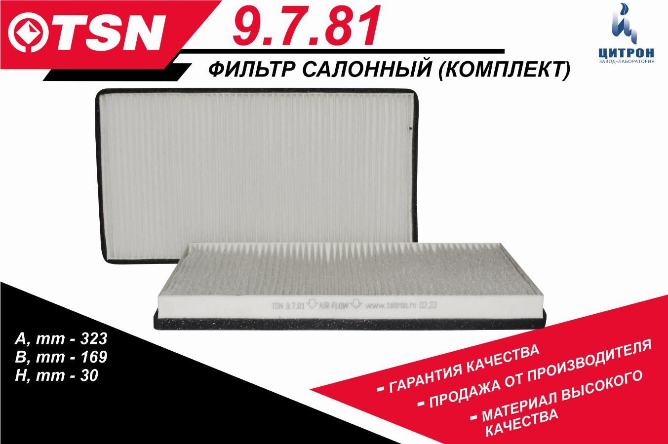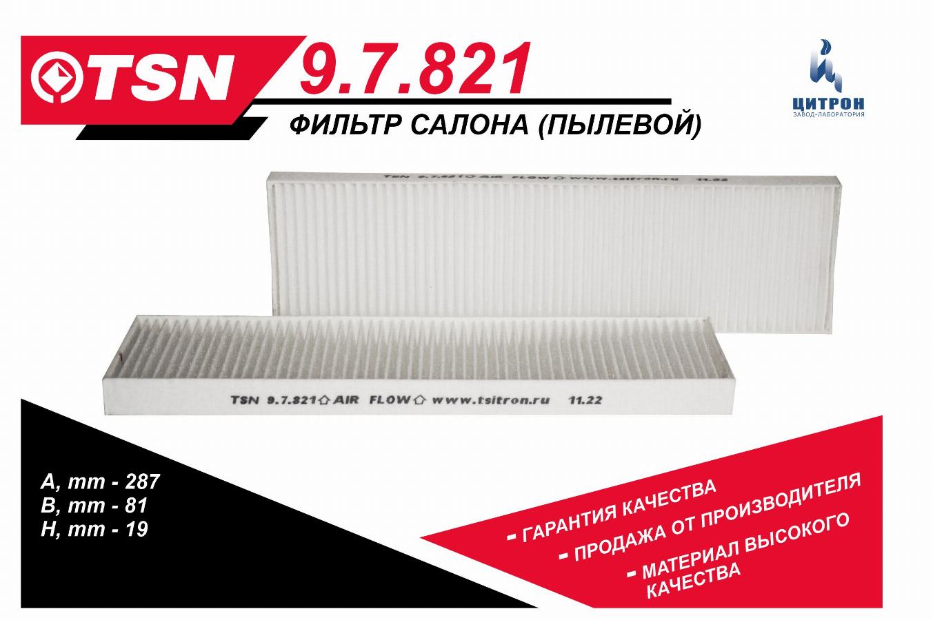 - широкий ассортимент ТСН фильтров, включая салонные фильтры TSN;