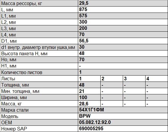 Полурессора 575х300(200/270)мм 1/48х100mm 1004801BW12920 ЧМЗ Полурессора 575х300(200/270)мм 1/48х100mm 1004801BW12920 ЧМЗ