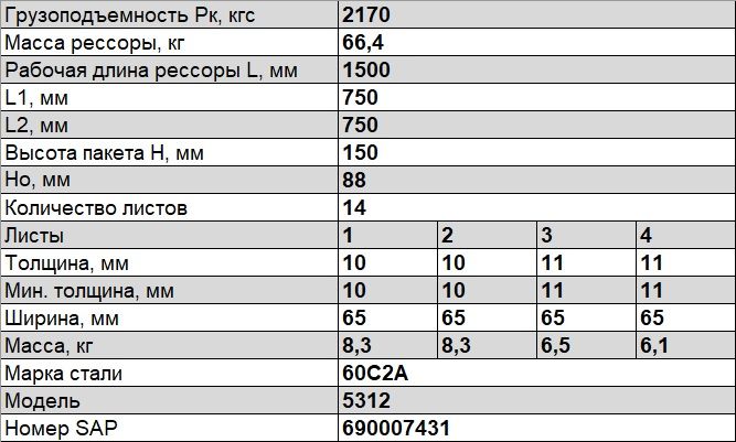 Рессора задняя 14 листов L=1610 мм ГАЗ-53/3307 5312-2912012-02 ЧМЗ Рессора задняя 14 листов L=1610 мм ГАЗ-53/3307 5312-2912012-02 ЧМЗ