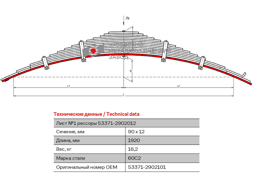 Лист рессоры №1 передней L=1920*90*12 МАЗ 53371-2902101 ЧМЗ