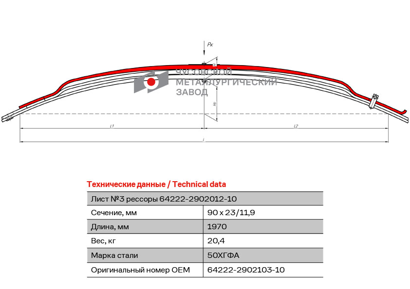 Лист №3 рессоры передней L=2000мм МАЗ-64222 64222-2902103-10 ЧМЗ