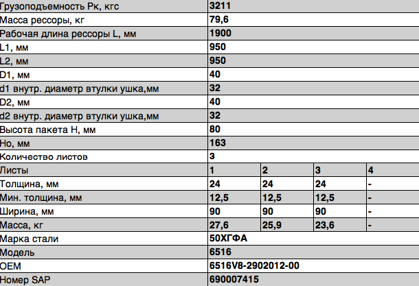 Рессора МАЗ-6516,6430С передняя (3 листа) с витым ушком L=1890мм ЧМЗ 6516v8290201200