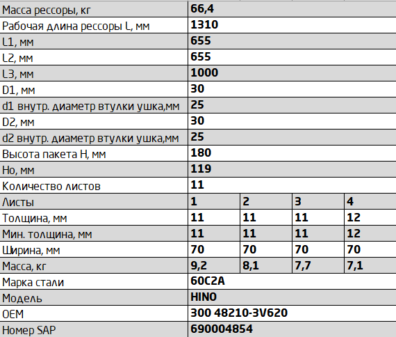 Рессора 6 листов задняя в сборе + подрессорник 5 листов Hino 300 ЧМЗ 701111hn2913012