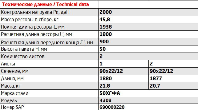 Рессора КАМАЗ-4308 передняя (2 листа) с ушком L=1960мм ЧМЗ 902202KZ290201215