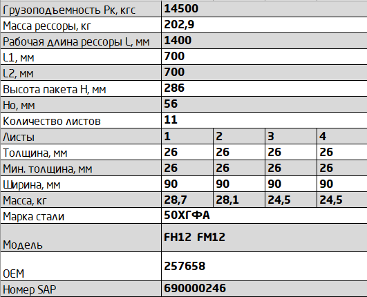 Рессора VOLVO FH12,FM12,FM10 задняя (11 листов) L=1660мм ЧМЗ SPRINGER 902611VV-2912012