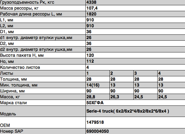 Рессора передняя 910х910мм 4/28х90mm Scania Serie-4 truck 6x4/8x4 Z 902804SC290201210 ЧМЗ