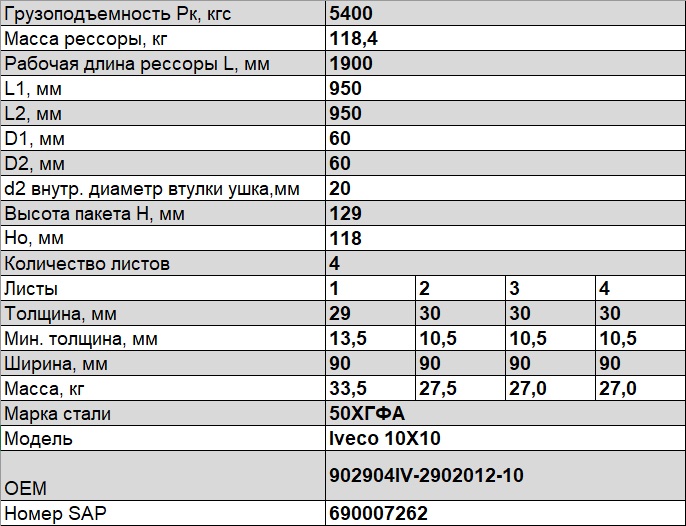 Рессора передняя для Iveco Trakker 4 листа ЧМЗ 902904iv290201210