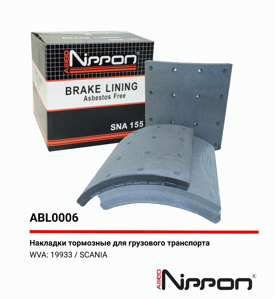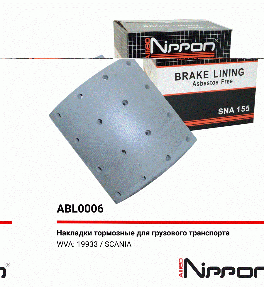Накладка тормозная 19933 STD 413*254 Scania 3-/4-/L-/P-/G-/R-/S-/T AD/ADA Allied Nippon abl0006