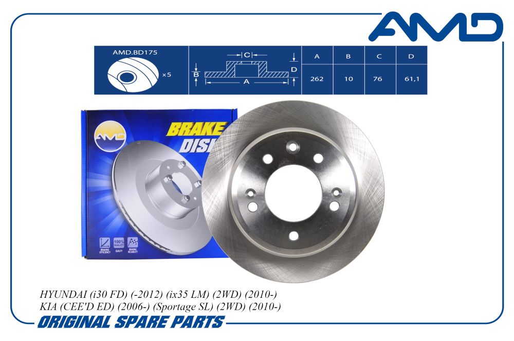 Диск тормозной задний Kia Ceed/Hyundai i30 1.4-2.0/1.6 CRDi 06> AMD amdbd175