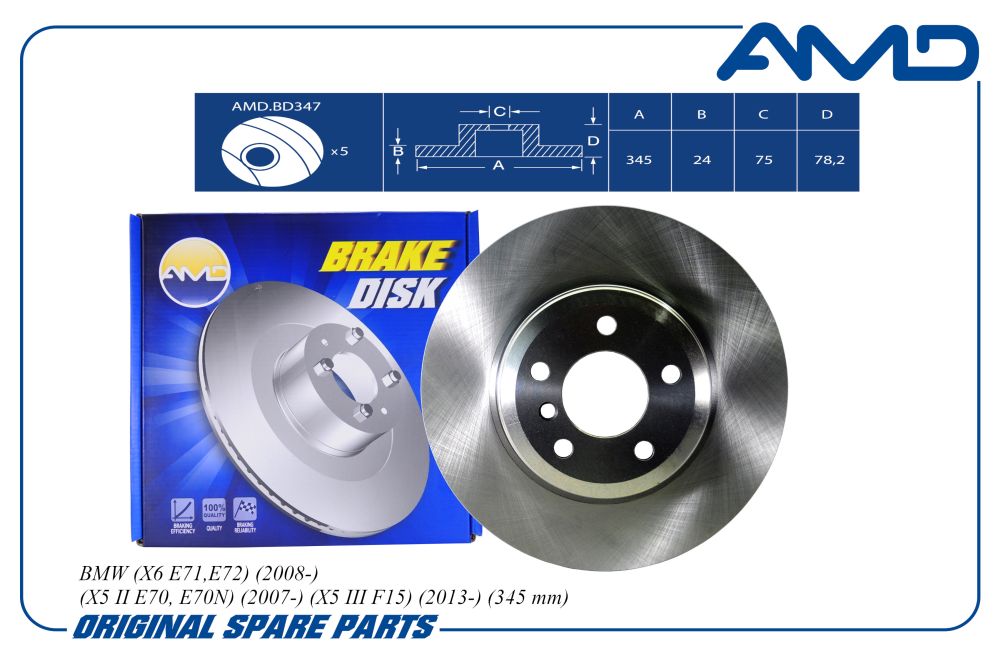 Диск тормозной задний BMW X6 E71,E72, 2008-, X5 II E70, E70N, 2007-, X5 III F15, 2013-, 345 mm AMDBD347 amdbd347