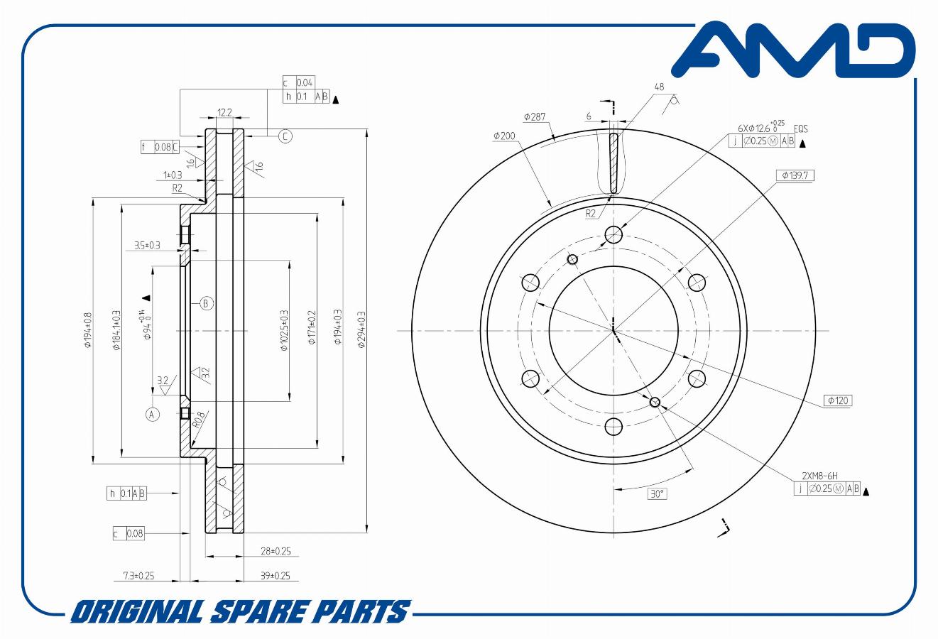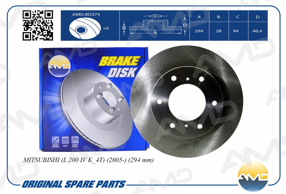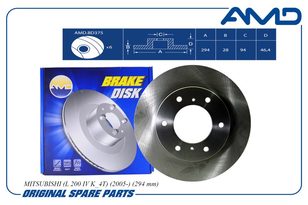 Диск тормозной 294*94*46.5 передний вентилируемый Mitsubishi L200 2.5Di-D 06> AMD amdbd375