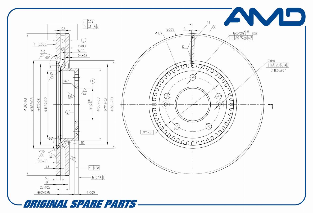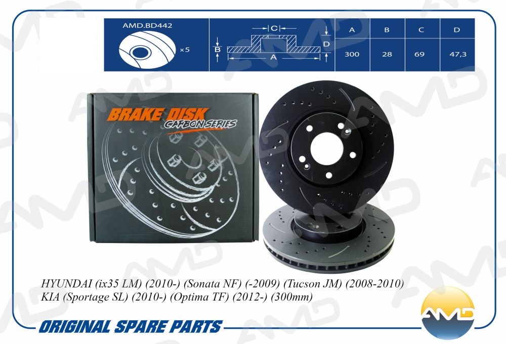 Диск тормозной 300*28 5отв. передний MB W639 Vito 3.0/3.2/2.2CDi 03>/Hyundai Sonata V 2.0-3.3i/2.0CRDi 05> AMD amdbd442