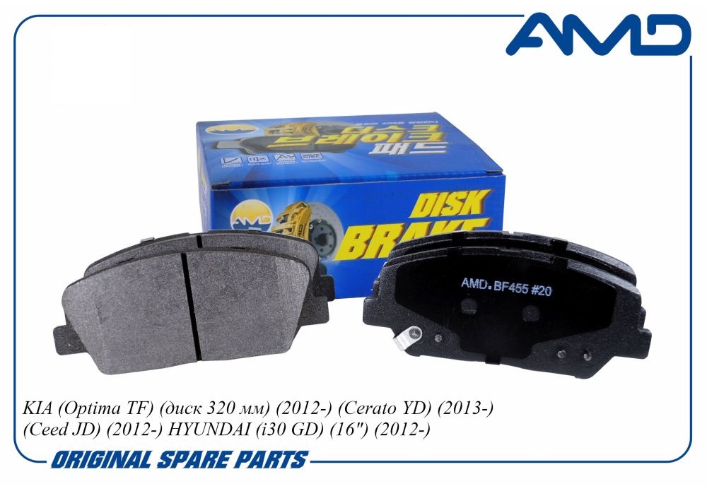 Колодки дискового тормоза передние Hyundai Solaris/Accent/KIA Rio all 11>/Geely Emgrand 2012- AMD amdbf455