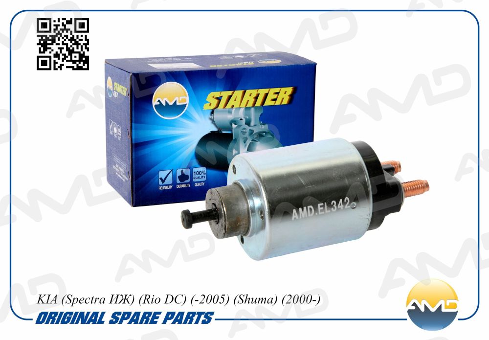 Реле стартера втягивающее Mazda 323/626 1.3-2.2 85-98/Kia Rio 00-05/Carens 02-06/Shuma 97-01 AMD amdel342