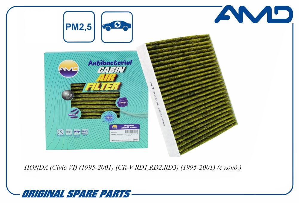 Фильтр салонный (антибактериальный, угольный) HONDA Civic VI, 1995-2001, CR-V RD1,RD2,RD3, 1995-2001, с конд. AMDFC779A amdfc779a