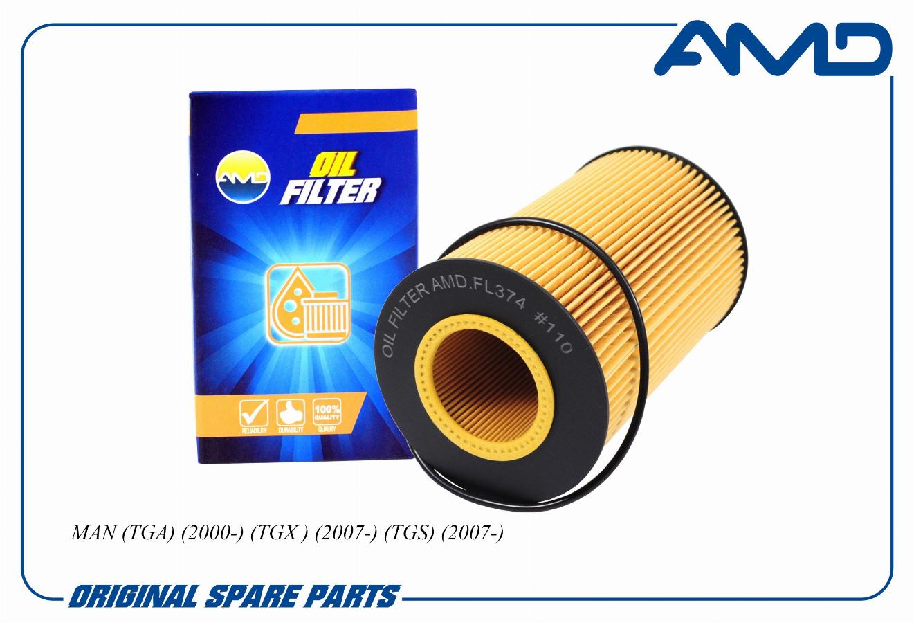 Фильтр масляный 203*121/57 MAN TGA/TGL/TGM/TGS/TGX/ F/M/L 2000/F/M/G 90/F 7/8/9/ Bus/Neoplan D2066/2676/2868/ Howo T5G/Sitrak MC11/MC13 AMD amdfl374