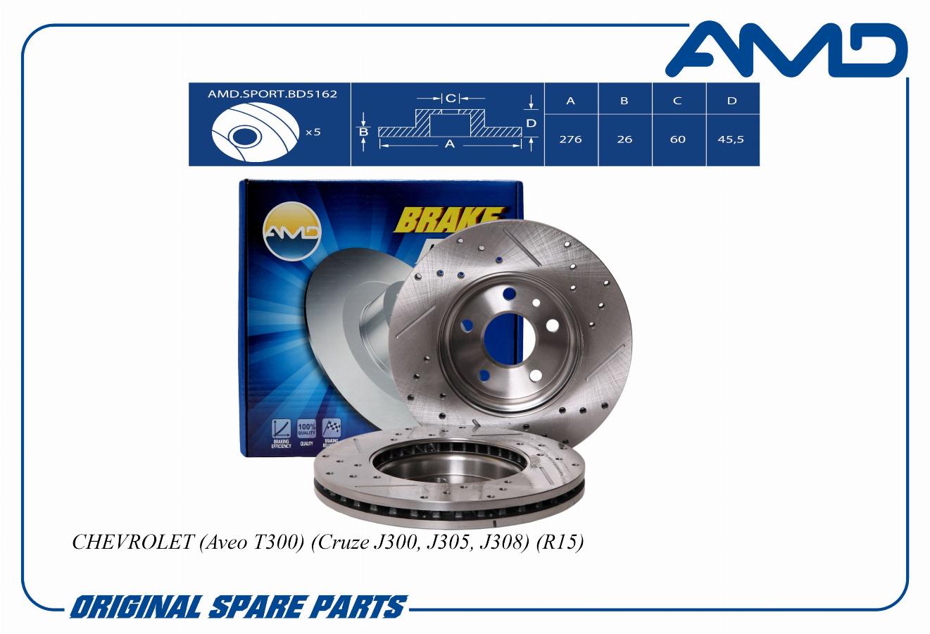Диск тормозной передний Chevrolet Aveo 1.2-2.0CDi/Opel Astra J 1.4/1.6/1.3-2.0CDTi 09> AMD amdsportbd5162