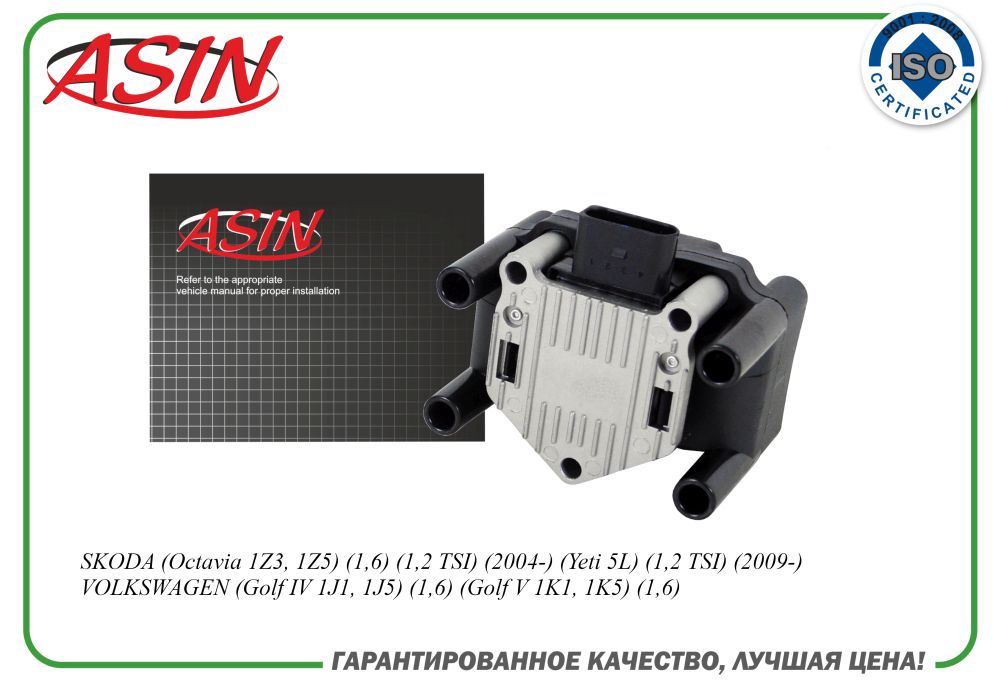 Катушка зажигания Audi A2-A4 1.4/1.6/1.8 96>/Skoda Fabia/Octavia 1.6-2.0 96> ASIN asinel2818