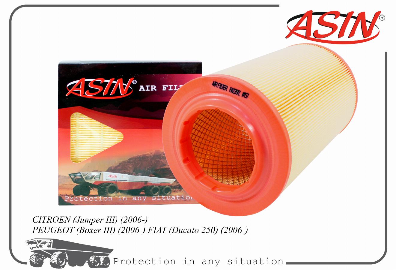 Фильтр воздушный Fiat Ducato 250/251/252/254, 290/295 / Peugeot Boxer 3/ Citroen Jumper III ASIN asinfa2392