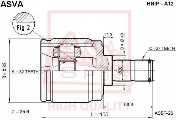 Шарнирный комплект, приводной вал Asva hnipa12