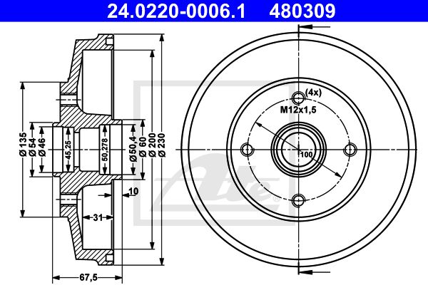 Общ. высота торм. барабана [мм]: 67.5