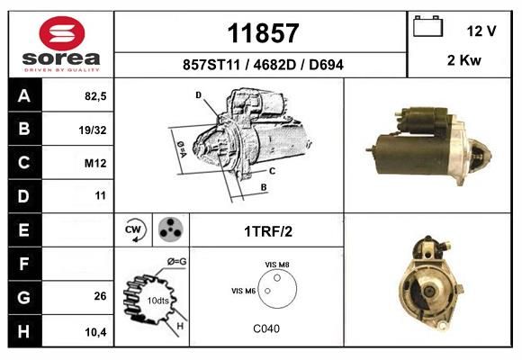 Стартер 12V 2.0 kW CW Z=10 EAI 11857