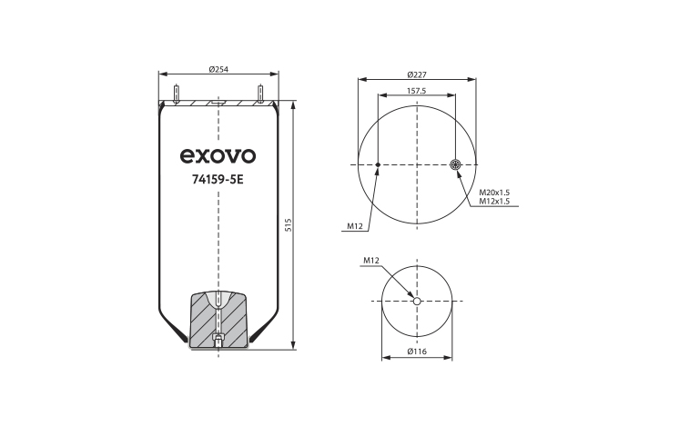 Пневморессора без стакана SMB/Fruehauf 741595E Exovo
