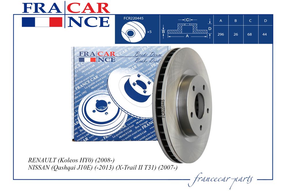 Диск тормозной 295.5*26 передний Nissan Qashqai/X-TRAIL 1.5DCI/1.6/2.0DCI 07- Francecar fcr220445