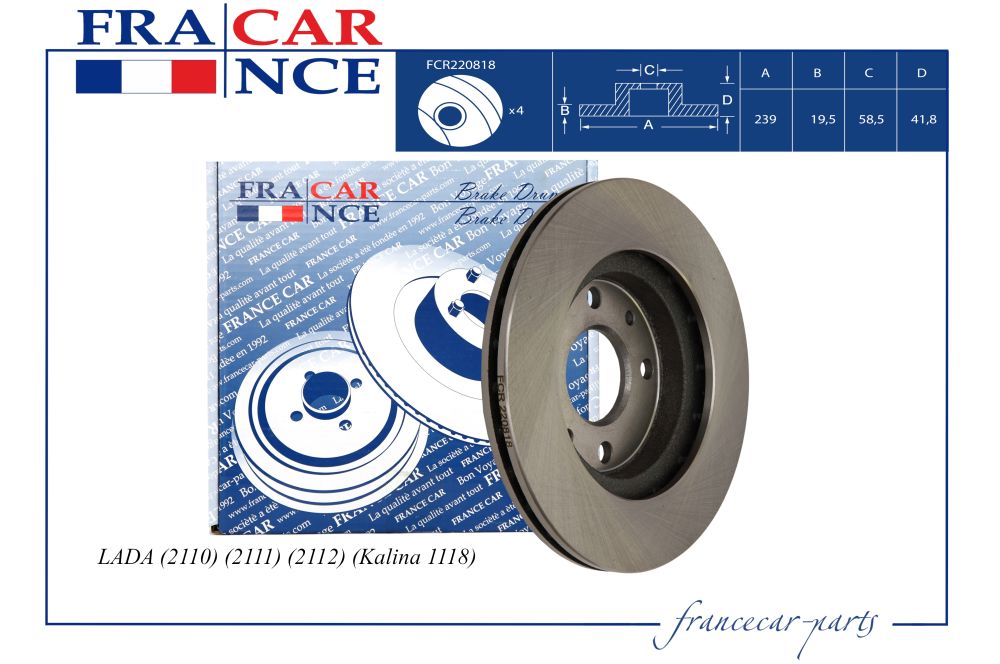 Диск тормозной 260*20 4отв. передний R14 Lada 110/111/112/Калина/Priora Francecar fcr220818