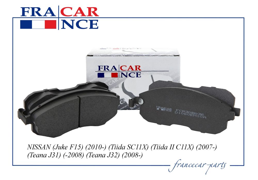 Колодки дискового тормоза передние Nissan Sunny 1.7D 82-86/Bluebird 1.8-2.0D 80-84/Maxima 2.0/3.0i 24V 89>/200SX 1.8T 91-93/Tiida 1.6/1.8/1.5DCi 09.07 Francecar fcr30b036