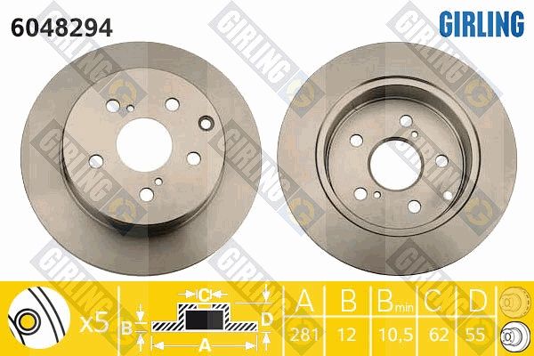 Толщина тормозного диска (мм): 12