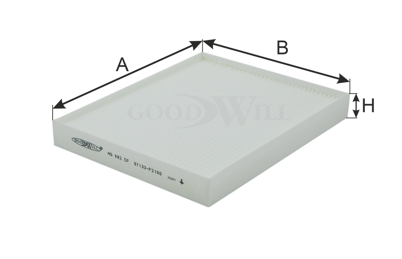 Фильтр салона Hyundai ix35 1.6/2.0 10>/Tucson 2.0D 06-10/Accent/Elantra 1.4i/1.6i/1.5CRDi 05>/Kia Sportage 2.0/2.7 04> GOODWILL ag682cf