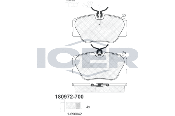 Комплект тормозных колодок, дисковый тормоз ICER 180972700