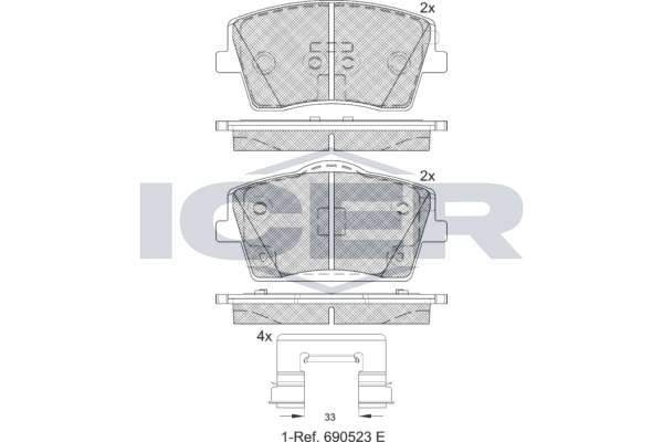 Комплект тормозных колодок, дисковый тормоз ICER 182354