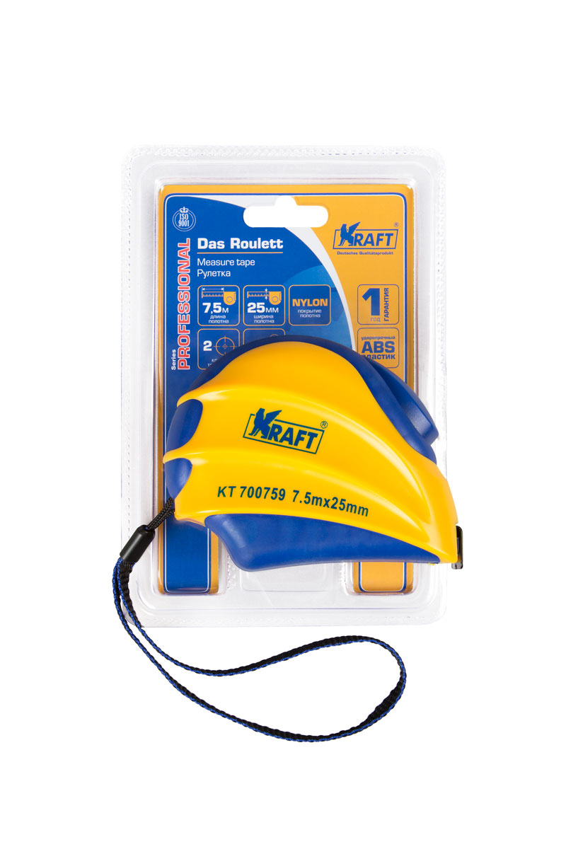 Рулетка 7,5м*25мм с автоматической фиксацией KT700759 Kraft