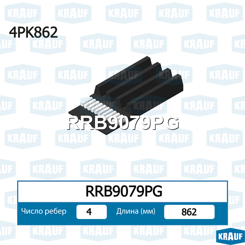 Ремень поликлиновой 4PK920 Fiat Tempra 1.4/1.6 90>/Tipo 1.4/1.6 >95 Krauf rrb9079pg