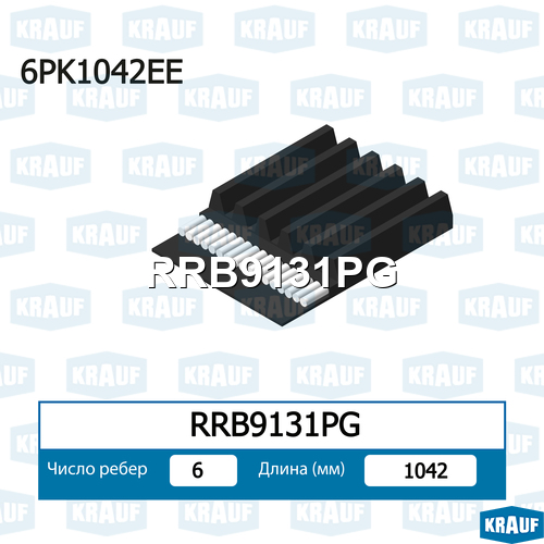 Ремень поликлиновой 6PK1045 Alfa 146/145/156 1.4-1.8 T.S. 96>/ FORD Galaxy I (VX) 5/1995->3/2000 Galaxy 1.9 TDi Krauf rrb9131pg