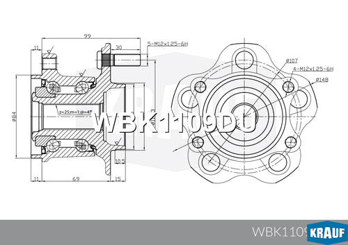 Ступица задняя в сборе Nissan QASHQAI 02/07/X-TRAIL 06/07-> Krauf wbk1109du