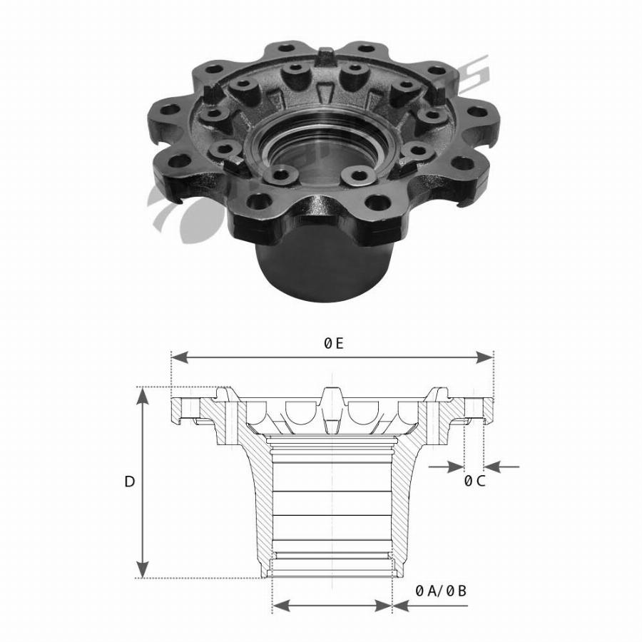 Ступица (оси прицепа) без подшипников MB 790.161 Mansons