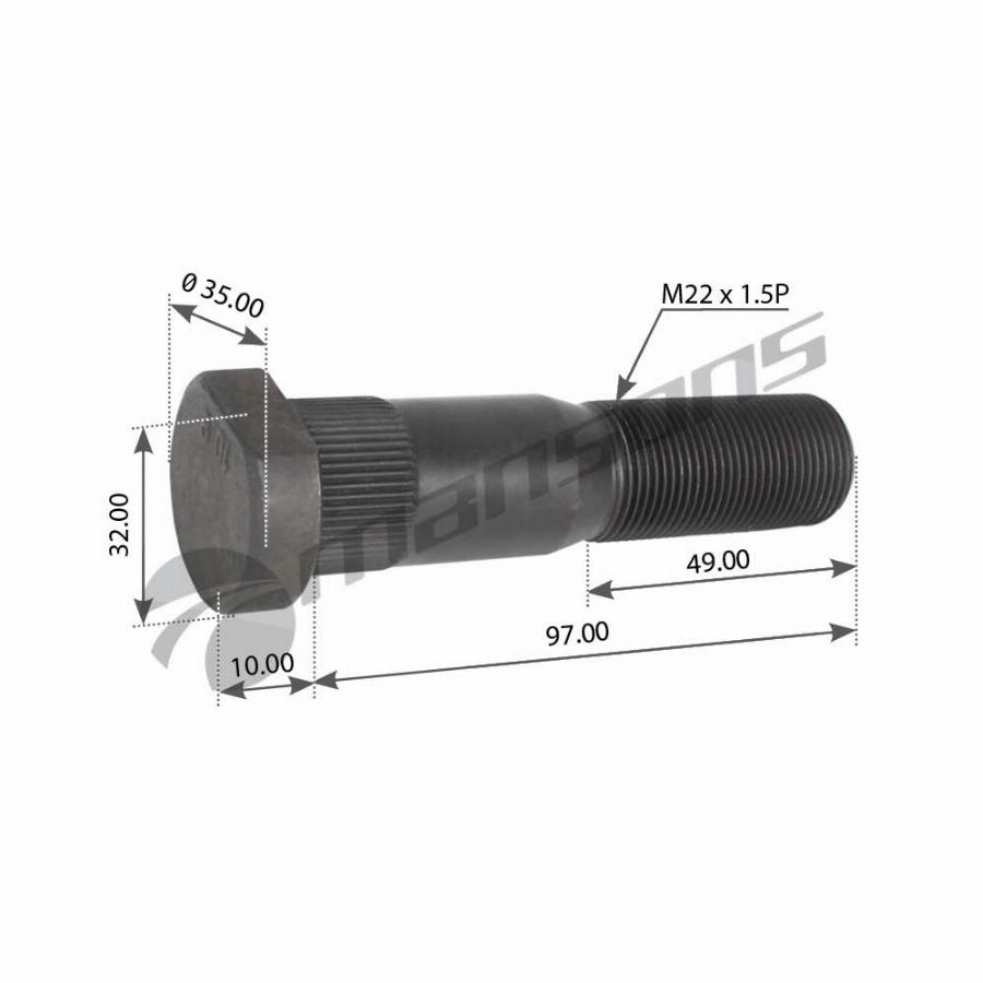 Болт колесный M22*1.5*107 задний Renault Premium/Magnum 800.069 Mansons