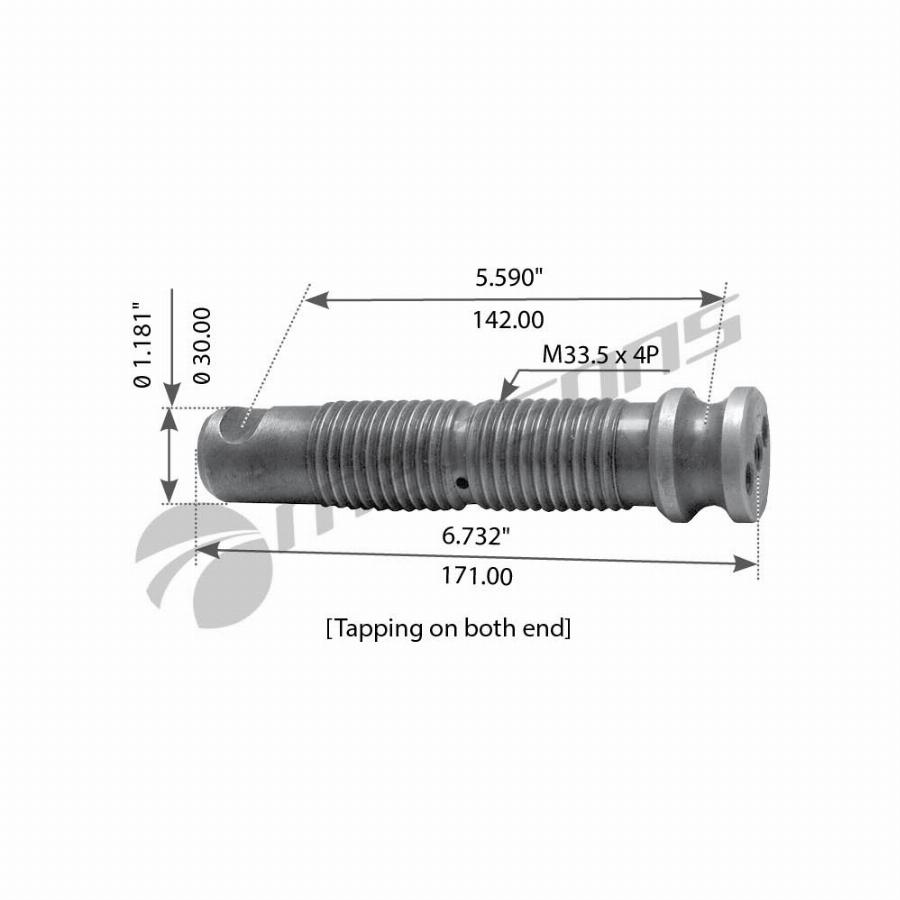 Палец рессоры передней [L=171 D=30 M33.5x4P] Mansons 900236