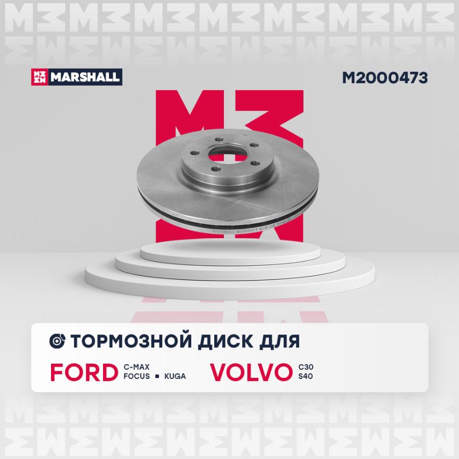 Диск тормозной передний 300*25 5отв. 16' Ford Focus II/C-Max/Volvo S40/V50 1.8/2.4/2.5/2.0TD 04> Marshall m2000473