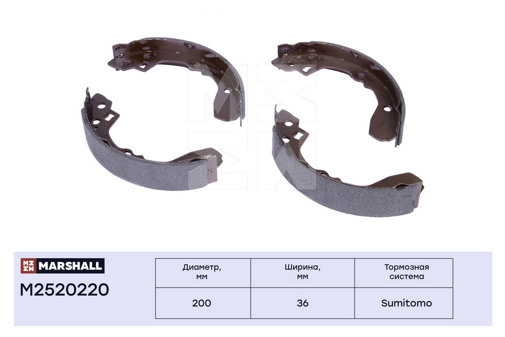 Колодки тормозные 200*36 задние барабанные Kia Shuma 97>/Sephia 1.5-1.8 93>/Concord 95> Marshall m2520220