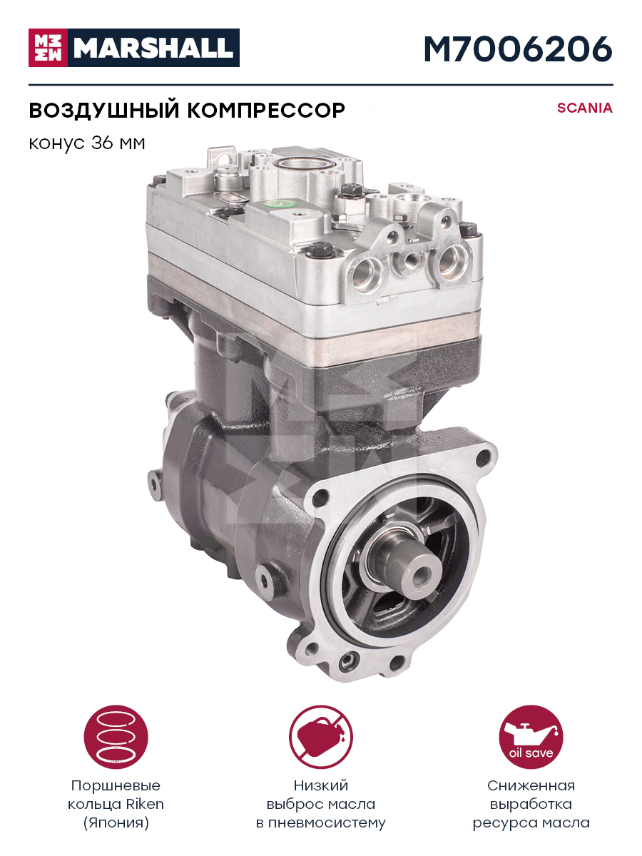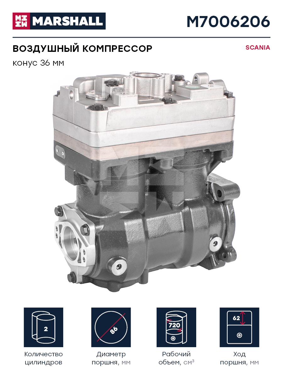 Компрессор воздушный 2-х цилиндровый Scania P-/G-/R-/T-/Bus 4-/F-/K-/N-/Industrial/Marine Marshall m7006206