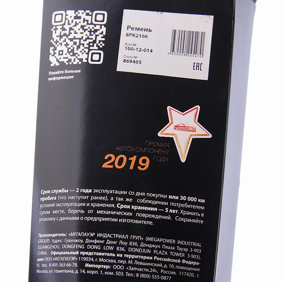 Ремень ГАЗель Next генератора 8РК2166 дв.CUMMINS ISF 2.8 ЕВРО-4 MEGAPOWER Megapower 10012014
