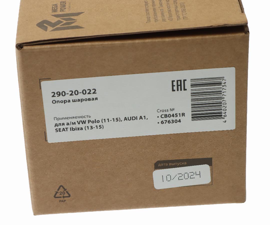 Опора шаровая нижняя левая к-т VW Polo 1.2-1.6/1.4-1.9TDi 01> Megapower 29020022