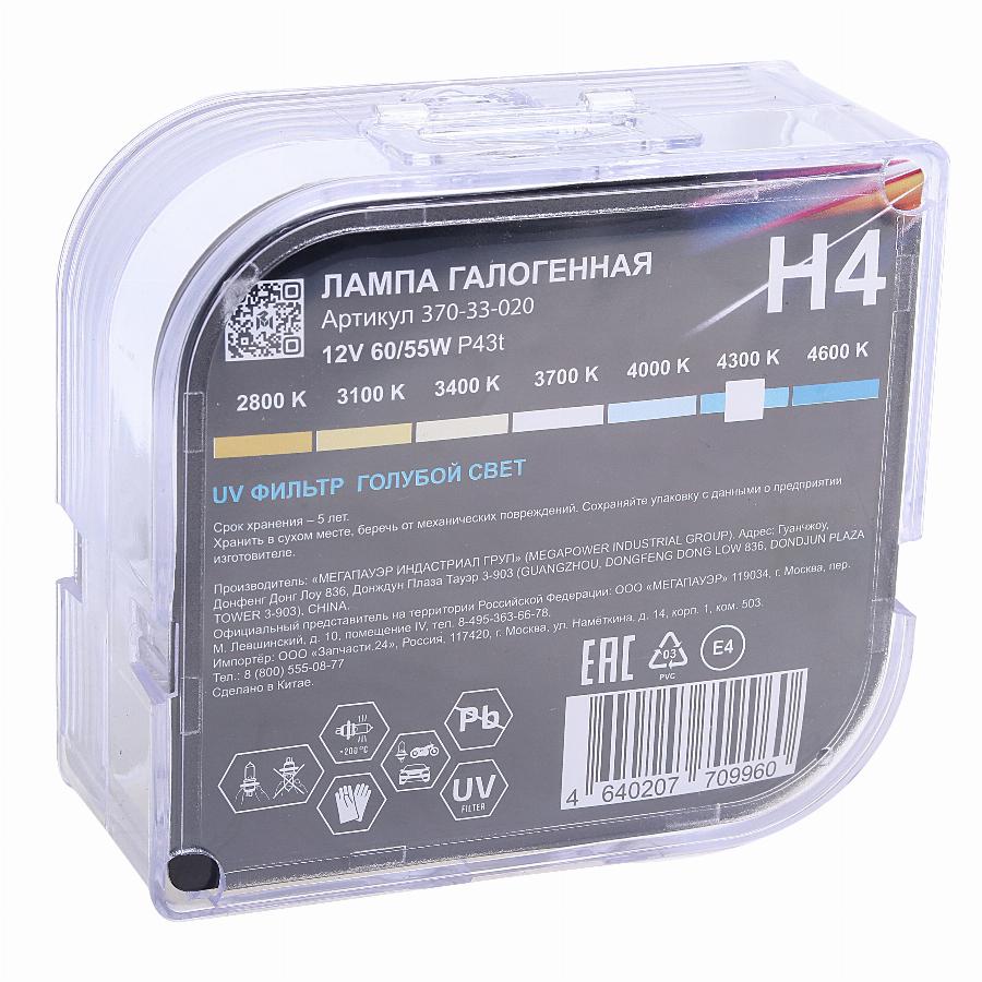 Лампа 12V H4 60/55W P43t бокс (2шт.) Blue White MEGAPOWER Megapower 37033020