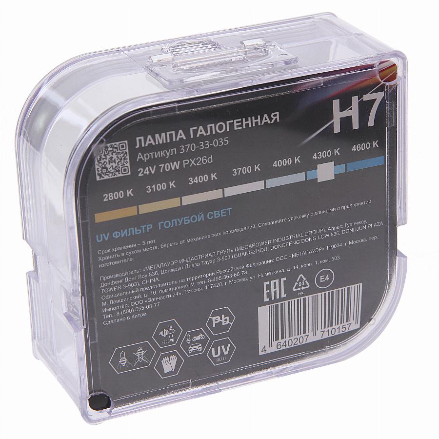Лампа 24V H7 70W PX26d бокс (2шт.) Blue White MEGAPOWER Megapower 37033035
