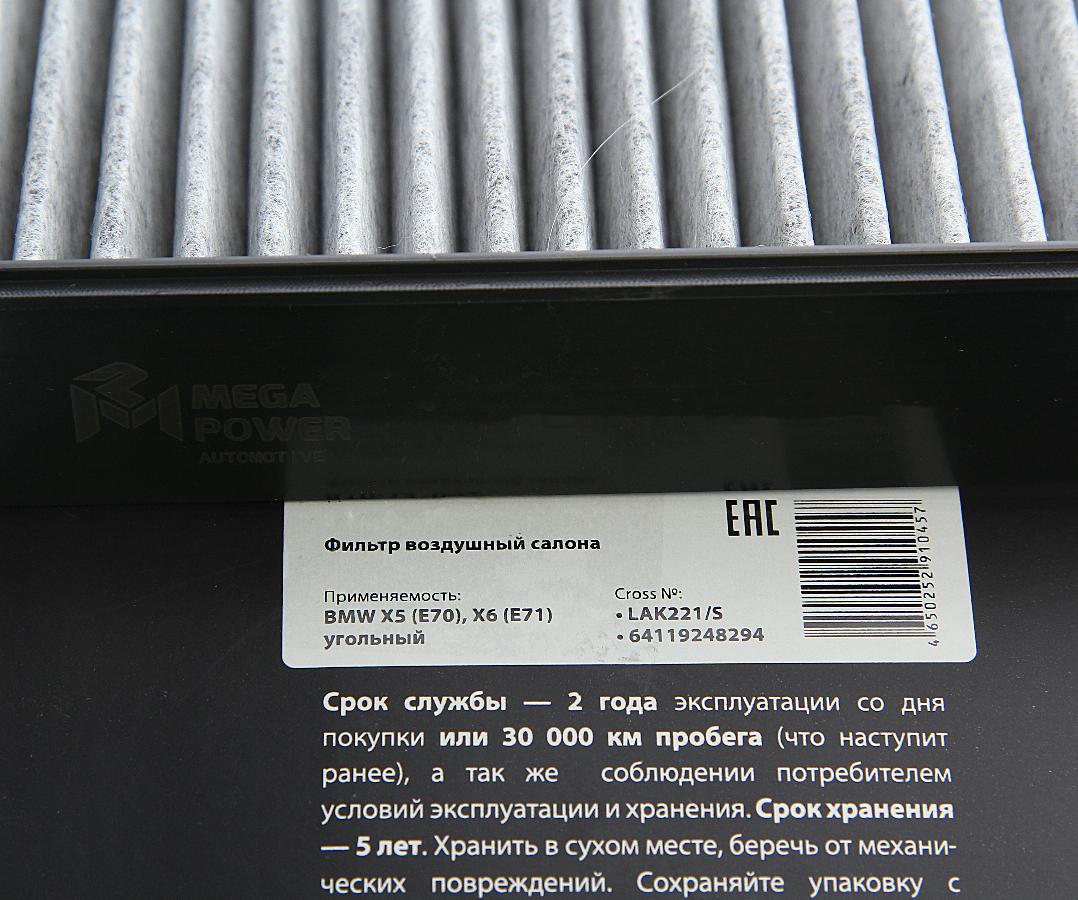 Фильтр салона BMW X5 E70/X6 E71 07> Megapower 81014002