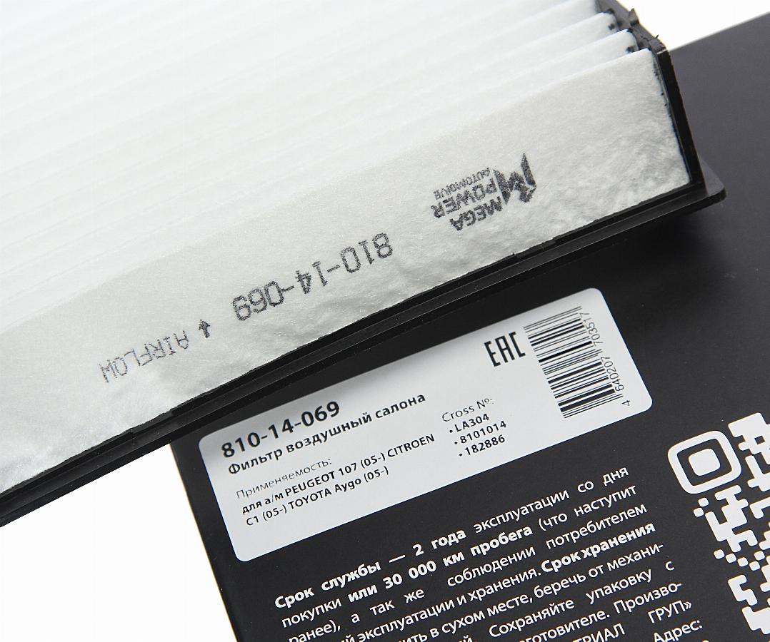 Фильтр салона Peugeot 107/Citroen C1/Toyota Aygo 1.0/1.4HDi 05> Megapower 81014069